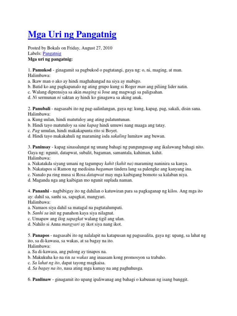 Uri ng pangatnig - philippin news collections uri ng pangatnig pangatnig na panlinaw halimbawa ng pangatnig na panlinaw sa.