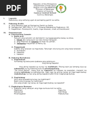 Sa pagtatapos ng ikalawang yunit Pagtatala ng mga detalye ng gagawa ng brochure ang klase na nagpapakita napakinggang media. Sinisikap ng ___ na iwasan ang mga balakid sa liku-likong daan ng Ilog Pasig. 2015-11-25 On this page you can read or download lesson plan mga likas na yaman in PDF format.